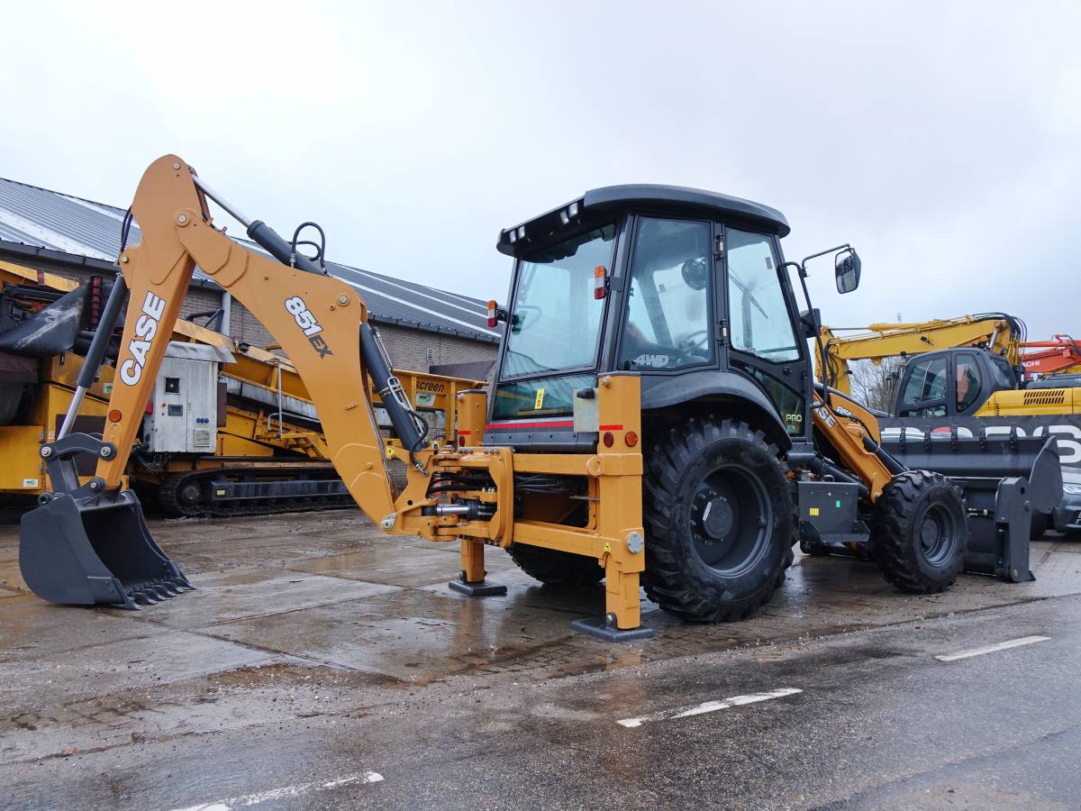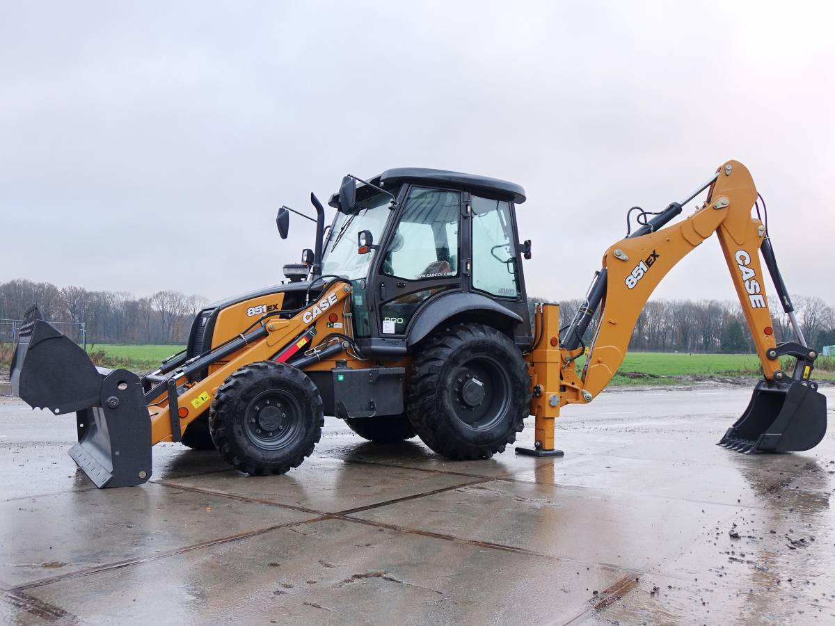 Type 851 EX-SS Location Netherlands Serial number: NKJ851EXCKKH02400 Description New and unused Case backhoe 2019  8 hours with 4/1 bucket. Machine is 4×4 driven by FPT engine and ready for it’s first job! We have more units availlable Sizes/Weights L*W*H: 6.35 x 2.30 x 3.75 (Cab height 2.90) Weight: 8230