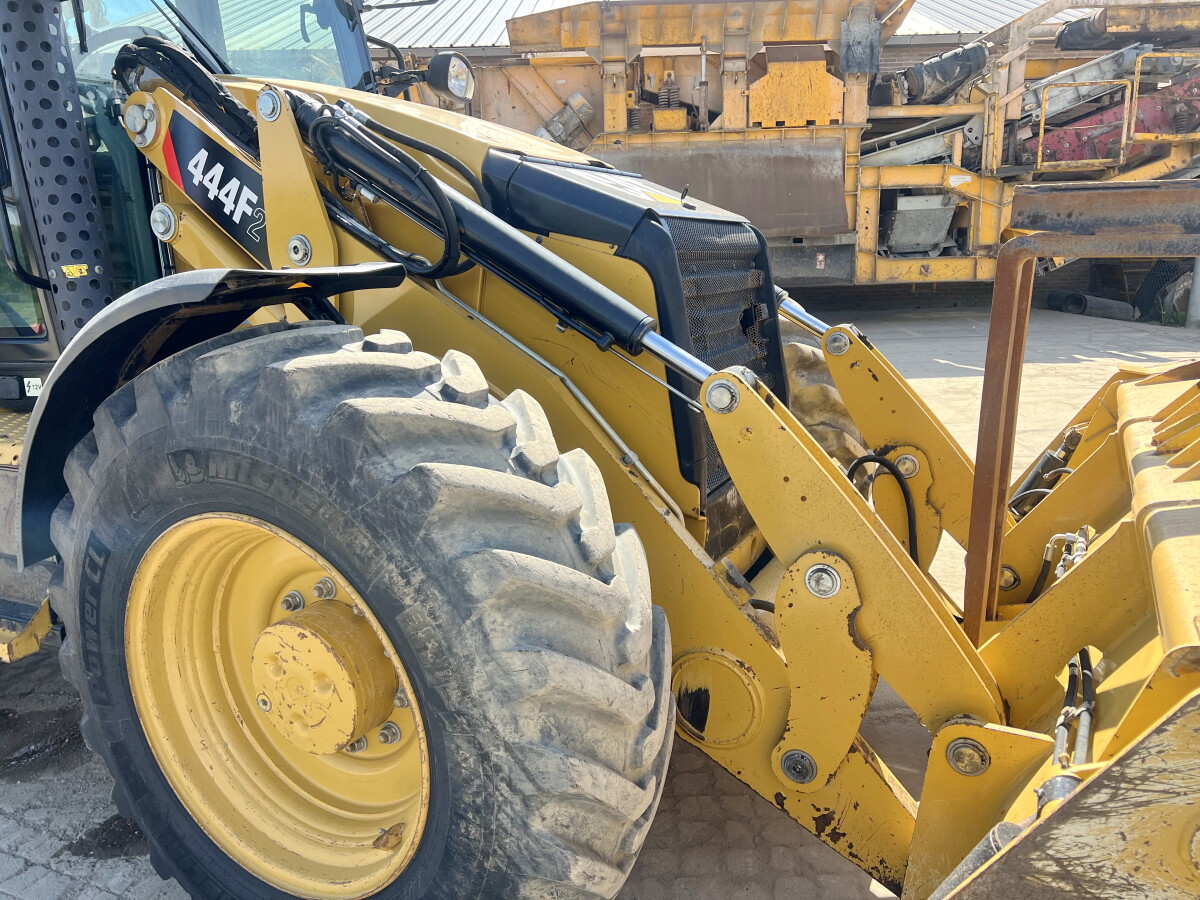 Type 444 F2 Location Netherlands Certificate: CE + EPA Serial number: CAT0444FHHWS00565 Description This used Caterpillar 444 F2 Backhoe Loader from 2018 has an engine power of 75 kW and counts 5470 operational hours. The total weight of this Caterpillar 444 F2 is 9870 kg and the dimensions are 5.85 x 2.45 x 2.95. Furthermore, this 444 F2 is equipped with Heated Cab, Radio, Quick coupler, Air Conditioning, HVAC (Heating & Airco), Extra hydraulic function, Hammer function. The Caterpillar Backhoe Loader also has a CE + EPA marking. Sizes/Weights Weight: 9870 L*W*H: 5.85 x 2.45 x 2.95 Technical Information Drive configurations 4√ó4 Engine information Engine brand: Caterpillar Engine model: C4.4 Cylinders: 4 Capacity in kW: 75 Tires/Tracks 80% 80% 440/80R28 70% 70% 440/80R28 Options Heated Cab Radio Quick coupler Air Conditioning HVAC (Heating & Airco) Extra hydraulic function Hammer function