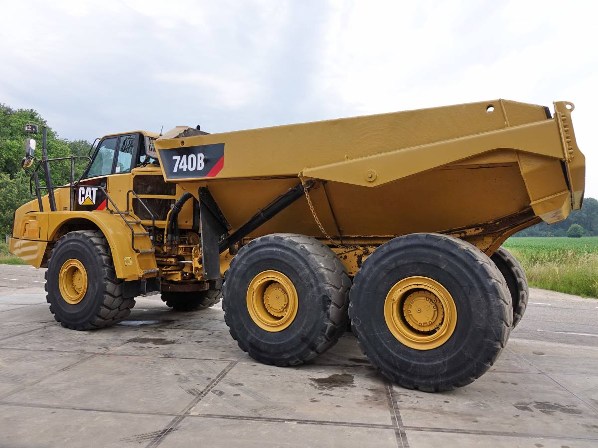 Type 740B (TOP CONDITION) Year 2012 / hours 10.484 Serial number: CAT0740BAL4E01204 Description Nice Caterpillar dumper in a clean and goodworking conditon. Machine has central greasing and tailgate, ready for the next job! Sizes/Weights L*W*H: 11.10 x 3.47 x 3.83 Weight: 34400 Technical Information Drive configurations 6 x 6 Engine information Engine brand: Caterpillar Engine model: C15 ACERT Cylinders: 6 Turbo Capacity in kW: 356