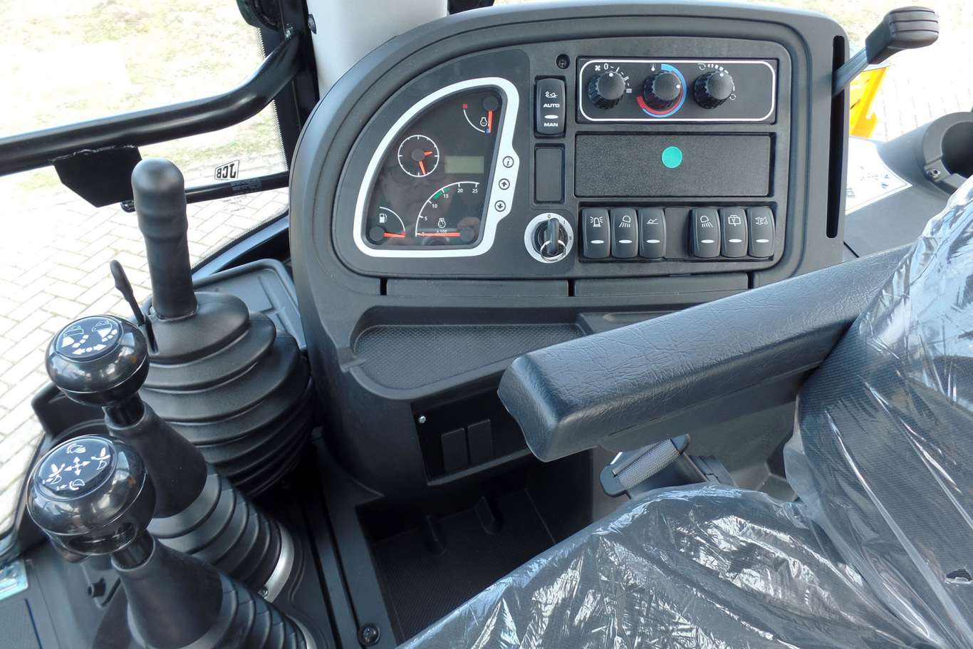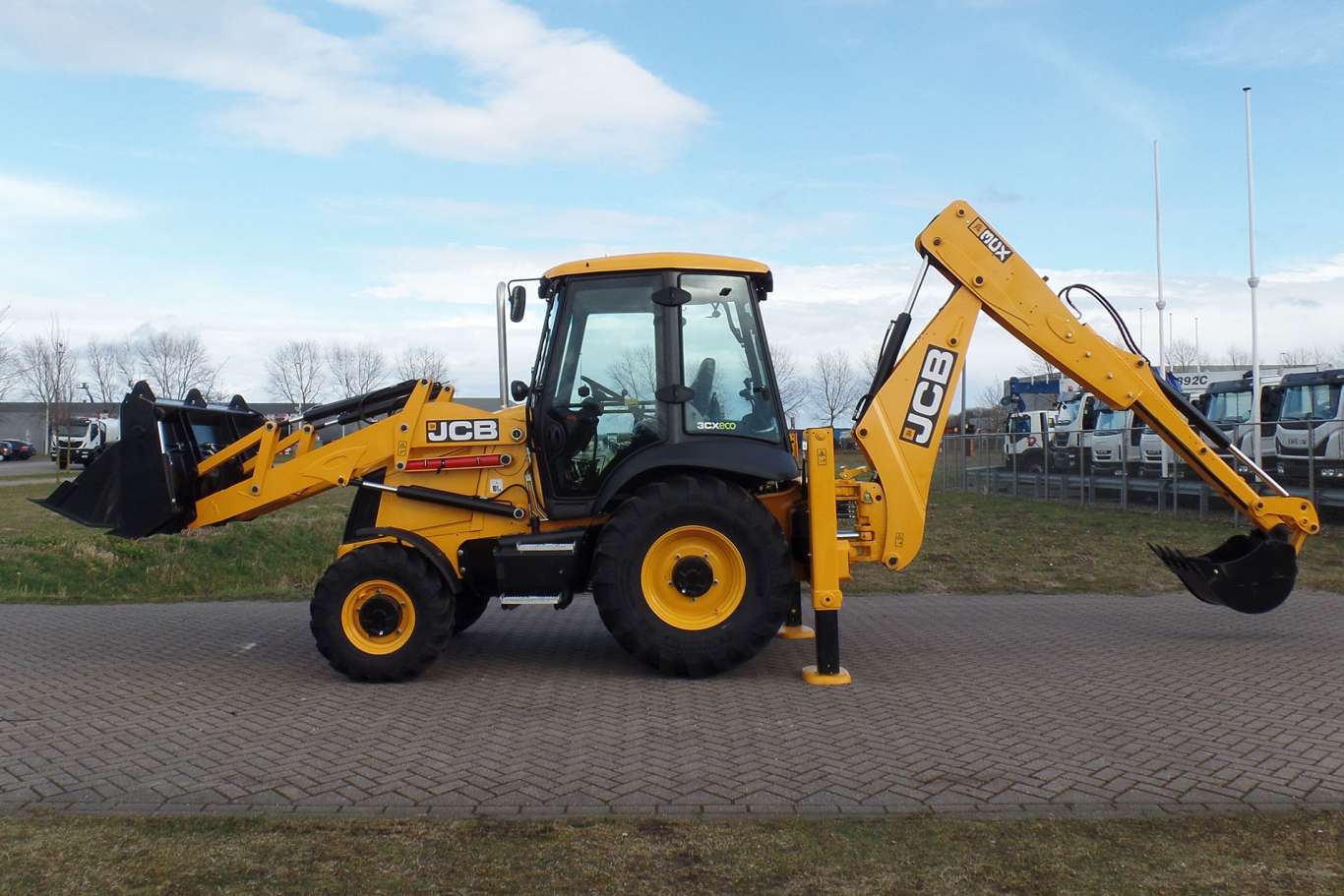 This New  2023 JCB 3CX Plus 4×4 Backhoe Loader  has an engine power of 92hp/68kW and counts 2 operational hours. The total weight of this JCB 3CX Plus 4×4 Backhoe Loader – Telescopic Boom is 7510 Kg and the dimensions are 596x235x287cm, Remarks 4WD Air conditioning Bucket: 600 mm Shovel: 2330 mm 6 in 1 Hammerline Manual Controls Standard Lift Telescopic boom with bucket Working lights Flashing lights Tire size front: 12×18 Tire size rear: 16.9×28