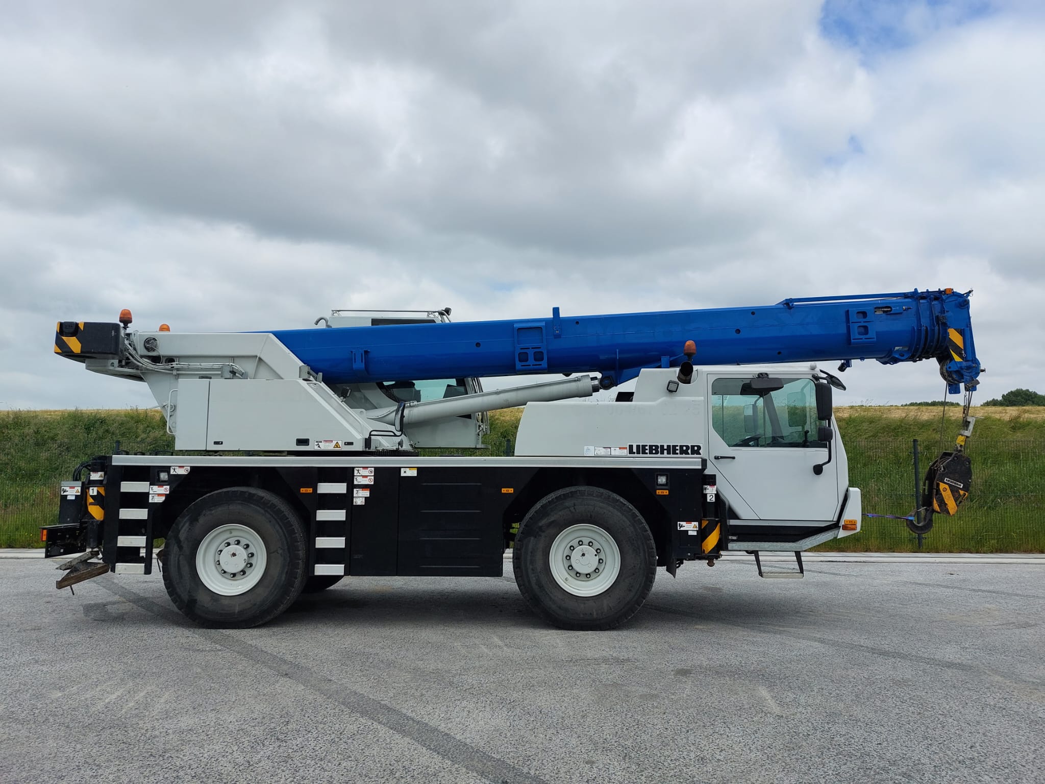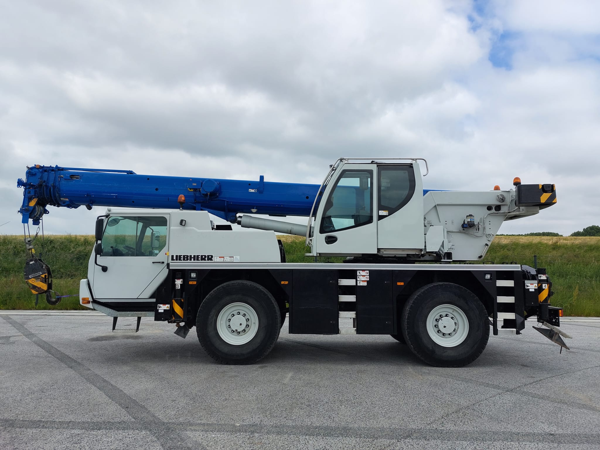 Specifications Capacity 35 ton Year 2016 Serial number 080395 Tires size 14.00R25 Chasis drive 4x4x4 Mileage 60951km Operating hours 2132h Engine Cummins Data superstructure Main boom 30mtr Counterweight 2,3t Hookblocks 3 sheave 22,8t Safety Liccon 2 Operating hours 5433h