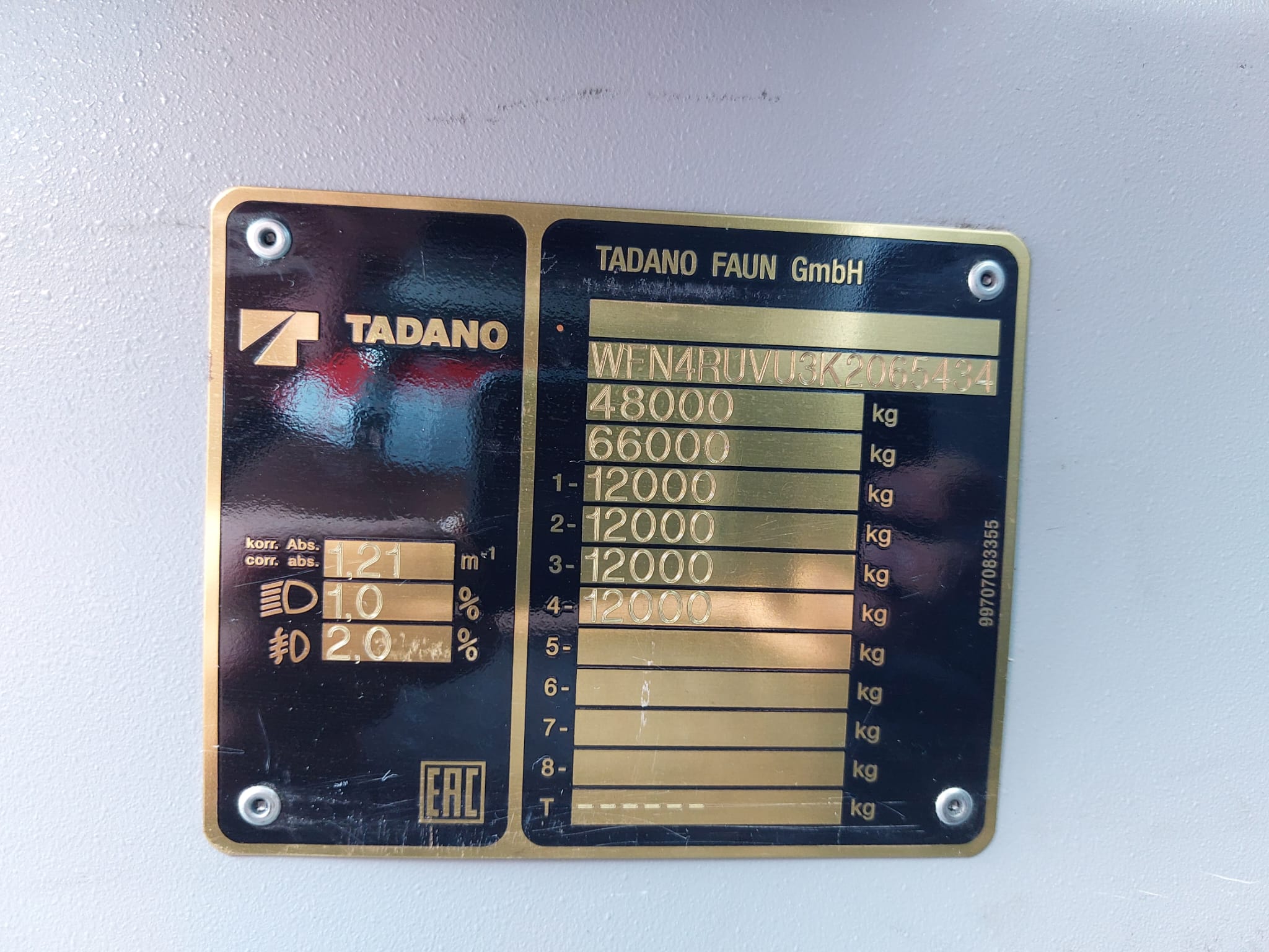 Specifications Capacity 70 ton Year 2019 Serial number 2065434 Data truck chassis Chassis number WFN4RUVU3K2065434 Tires size 20.50R25 Chasis drive 8x6x8 Mileage 54447km Engine Mercedes OM 470 LA / OM 934 LA Gear box ZF AS-Tronic Data superstructure Main boom 52.1mtr Jib 1.3mtr Hookblocks 3 sheave 30,5t Winches 1 Operating hours 2876h