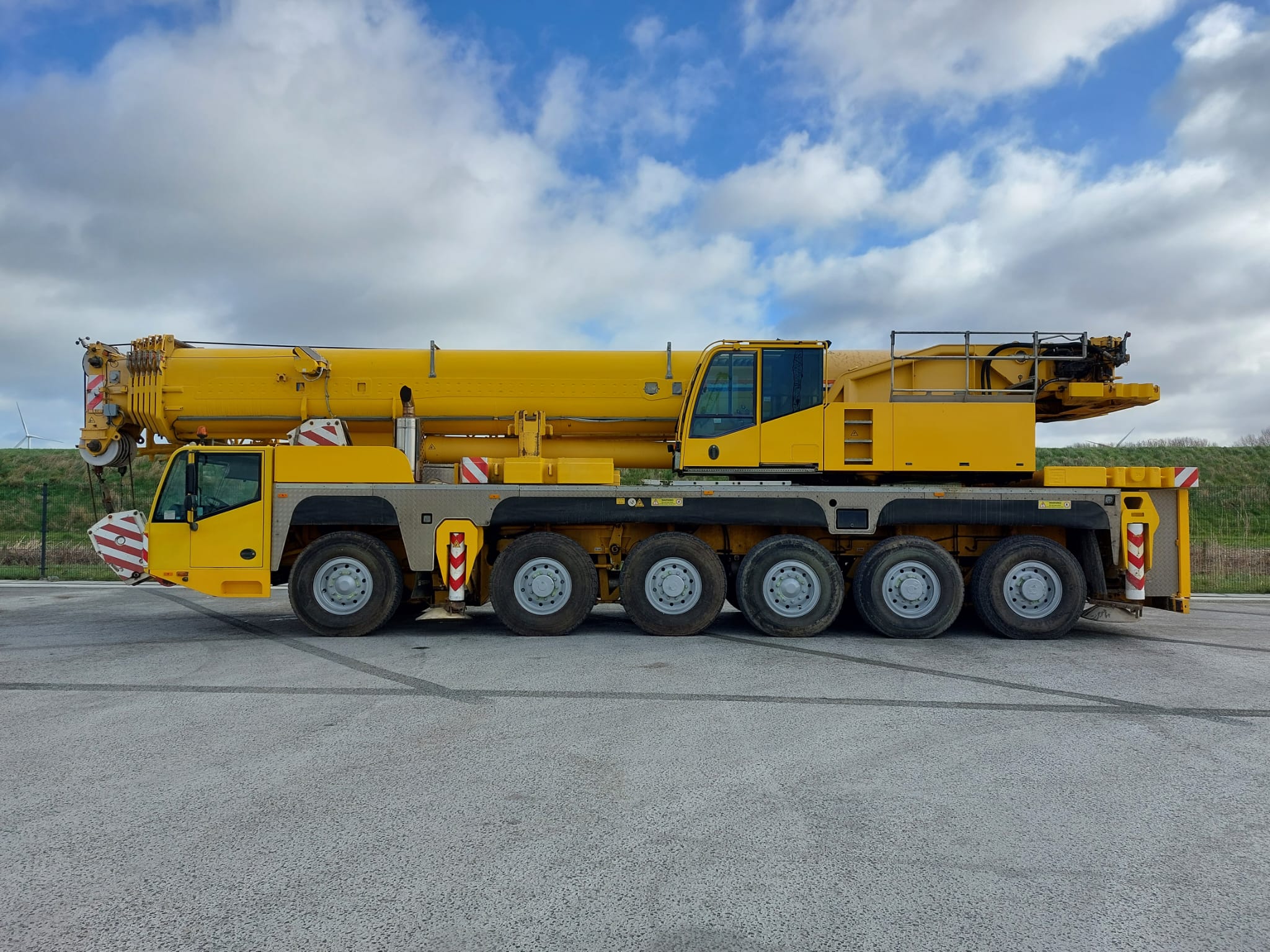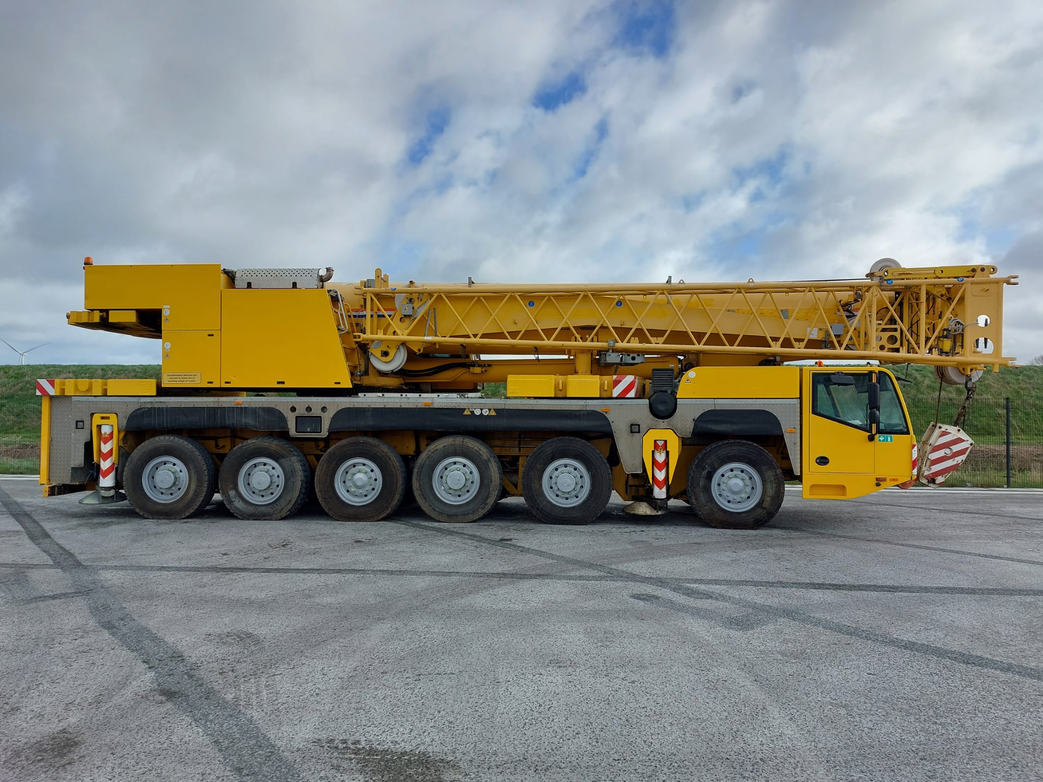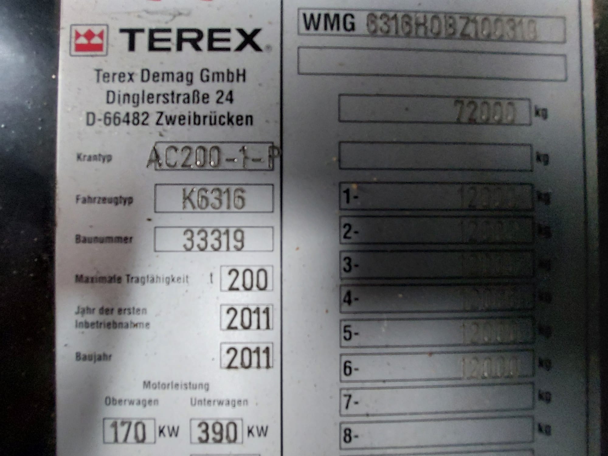 Specifications Capacity 200 ton Year 2011 Serial number 33319 Tires size 385/95R25 Chasis drive 12x8x10 Mileage 178.353km Engine Mercedes-Benz OM502LA Gear box ZF AS-Tronic Data superstructure Main boom 67.8 mtr Jib 17 mtr Winches 1 Operating hours 9119h
